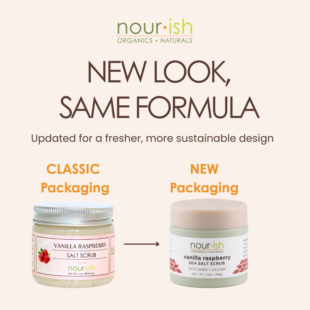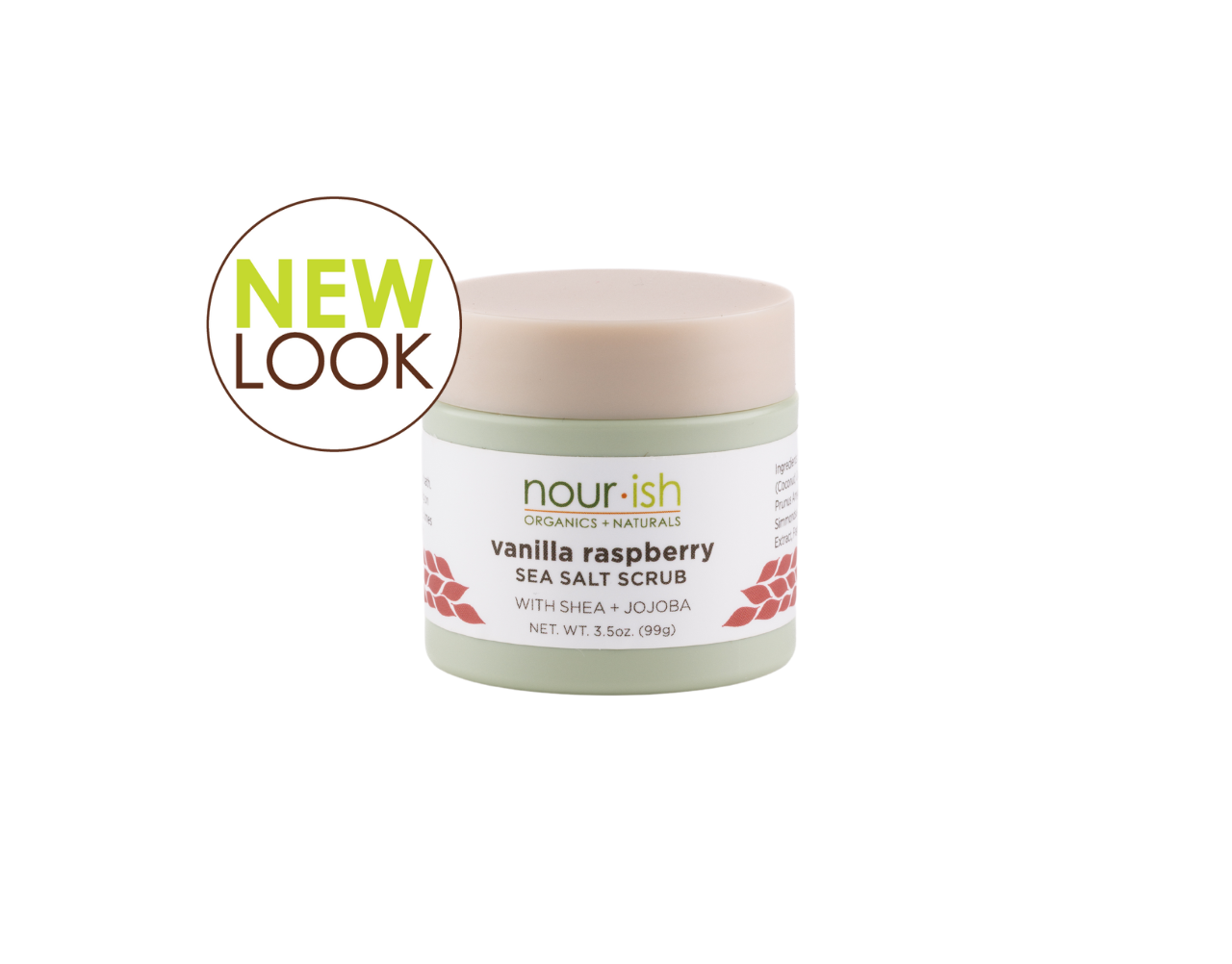 We make our luxurious, skin-conditioning Vanilla Raspberry scrub with coconut oil, shea butter and Dead Sea salt. It's one of our favorite healthy, yummy scrubs, but it's better in the bathroom than the kitchen!
