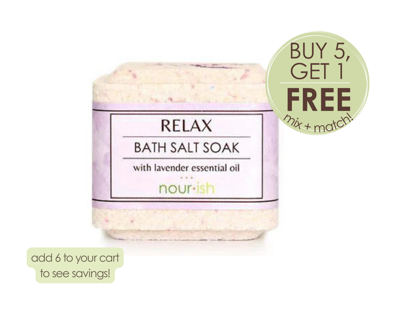 Drop one Bath Salt Soak into a full bathtub. Let the blend of salt, sea kelp, and essential oils soothe sore muscles, hydrate your skin, and detoxify your body.