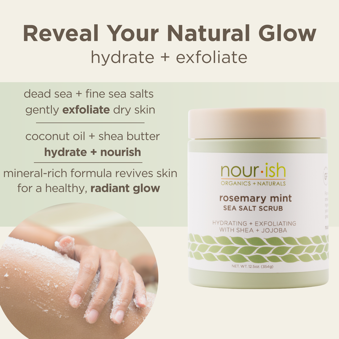 • Mineral-rich Dead Sea salt helps detoxify and replenish